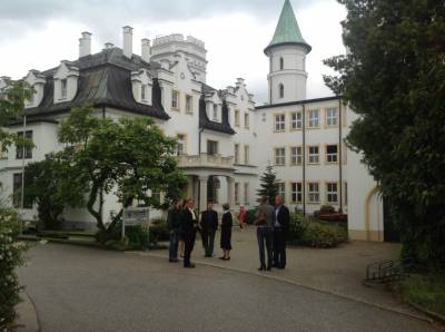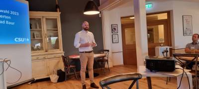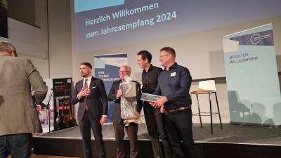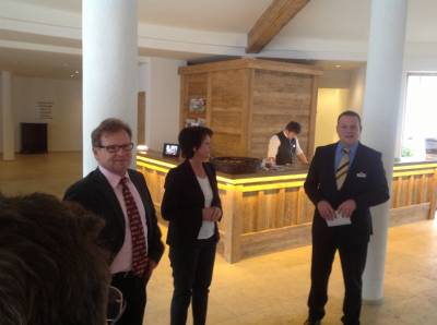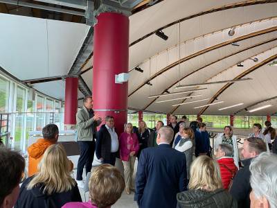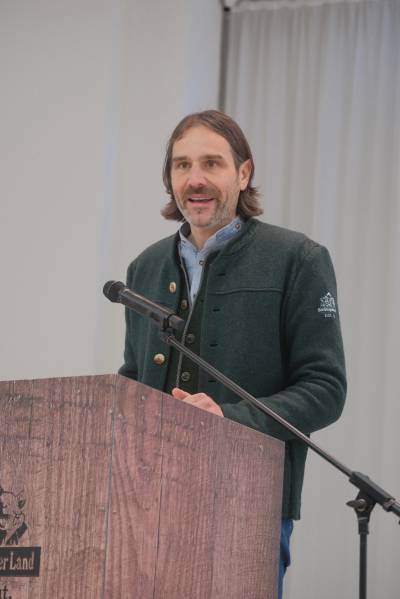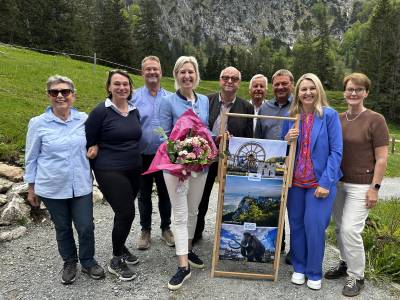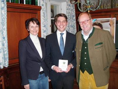 Erzbischof Gänswein mit seinem Geschenk, ein historisches Notenblatt aus dem Chiemgau