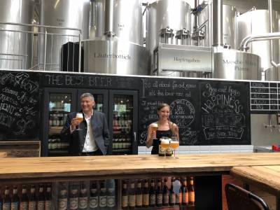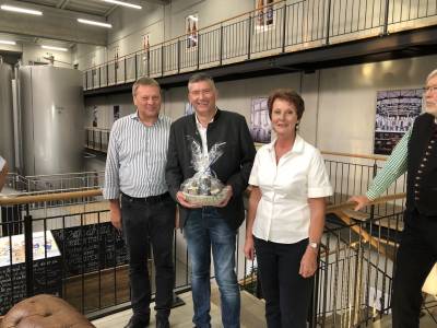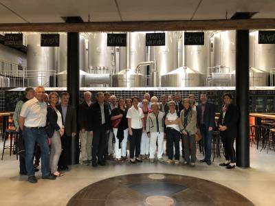Die Mitglieder der Mittelstandsunion waren zu Besuch bei der BrauKon in Seeon-Seebruck. Geschäftsführer Christian Nuber lud zuerst zu einer gern angenommenen Probe von Camba Bierspezialitäten. Dabei brachte er den Besuchern die Firmengeschichte näher. Von der Gründung, über die Namensfindung bis hin zu Geschichten aus der täglichen Brauer- und Ingenieurspraxis berichtete er und fand ein interessiertes Publikum.
